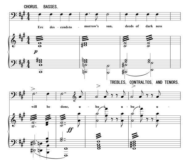 [3] Performed at Covent Garden, July 1902, and distinctly Wagnerian in style. The opening woodland scene music is as original as it is delightful, and evidences the real ability of this native lady composer.—Ed.