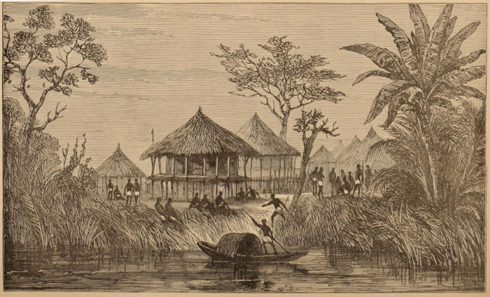 [41] In this way it is usual for villagers on the river banks to challenge canoes. It would be very unusual for the crews to pass on without heeding the call, for then the villagers might fire on them. It is no excuse to speak of “being in a hurry” in this land. The same rule applies in the case of strangers passing a village. Europeans, however, are understood to be always in great haste, and are seldom interrupted.