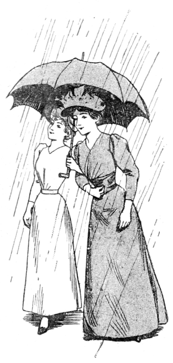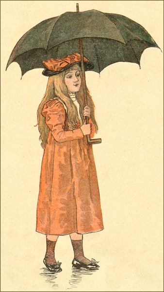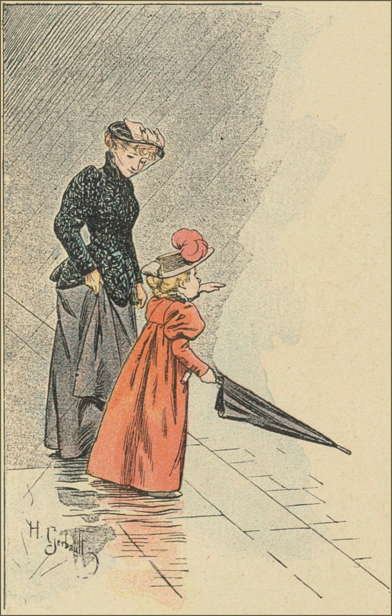 «Au contraire, ma petite, il faut ouvrir ton parapluie qui nous empêchera toutes les deux d’être mouillées, et une ondée ne lui fera aucun mal, je t’en réponds.»