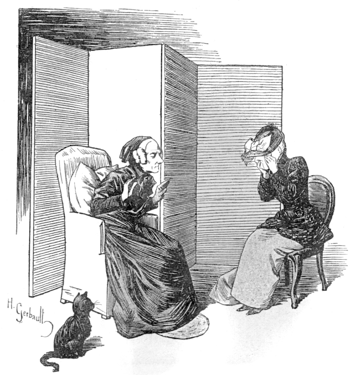 «Gardez-le, Monsieur; ce parapluie-là ne me rappelle rien de bon, c’est le jour où je l’ai perdu que ma chère maman a eu son attaque, qu’en rentrant je l’ai trouvée à moitié morte.