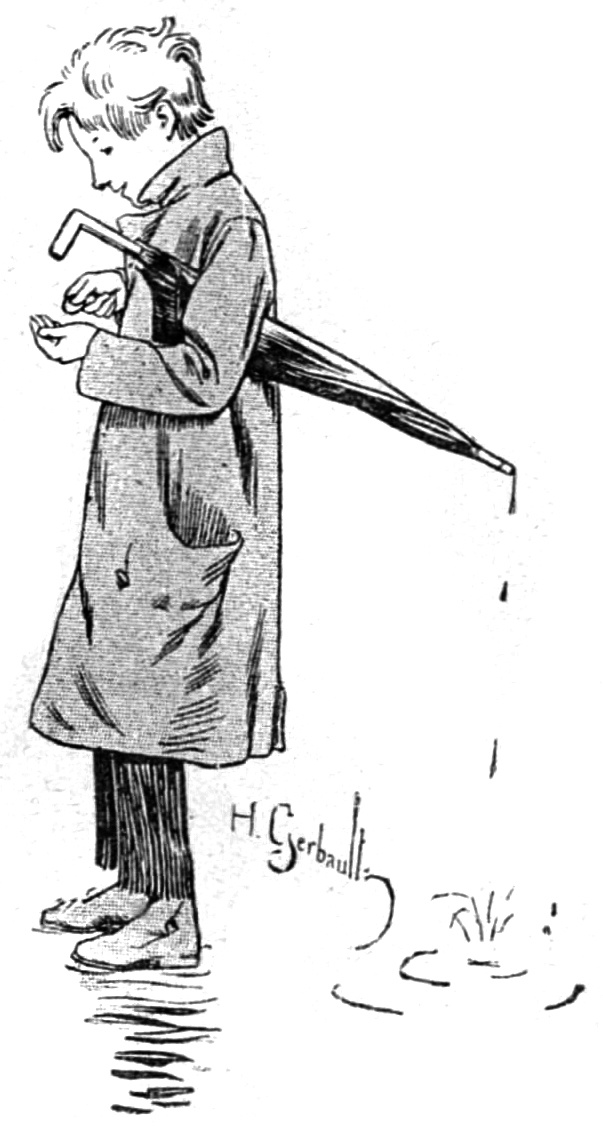 Elle passa par-dessus ma gaine un étui de papier gris; j’eus à peine le temps de murmurer un dernier adieu à mes camarades les parapluies neufs, à nos vétérans les parapluies en réparation, de donner un souvenir à ma chère petite ombrelle bleue.... J’entendis un instant des voix, perceptibles pour moi seul, qui disaient: «Adieu! Au revoir! Bonne chance!» C’en était fait! je me trouvais dehors, au grand air, lancé dans le monde, le vaste monde, emporté dans les bras d’une petite fille qui ne savait trop comment me tenir, car j’étais presque aussi grand qu’elle.