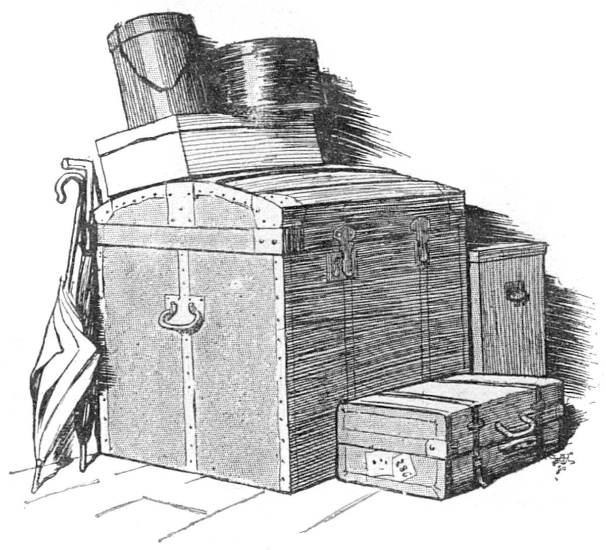 Sous le toit de la maison de Mme Mancel existaient de vastes greniers, fort bien aménagés, qui servaient de réserve et de débarras aux autres étages de la maison; là s’entassaient les coffres de voyage, les vieux meubles, mille objets encombrants, non pas en désordre, mais classés méthodiquement.