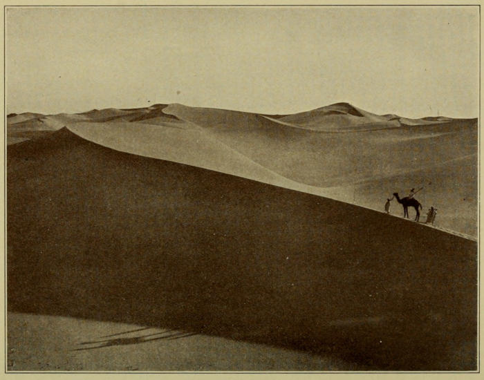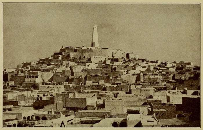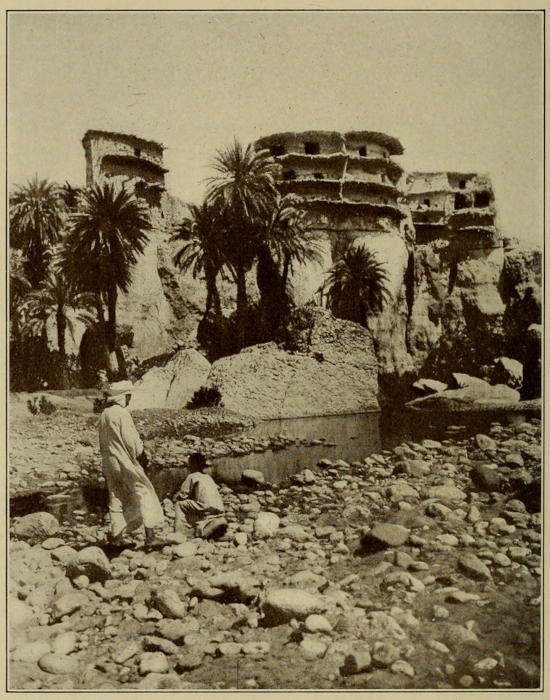 Because in the geographies of our school-days large portions of North Africa were painted a speckled yellow, and because of the pictures of sand-dunes reproduced in certain magazines, we habitually picture the Sahara as a trackless waste of orange sand, on which grows no living thing, little realizing that it is broken by mile-high mountain ranges and dotted with oases, some of them as large as a New England State, which support thousands of inhabitants and millions of date-palms.