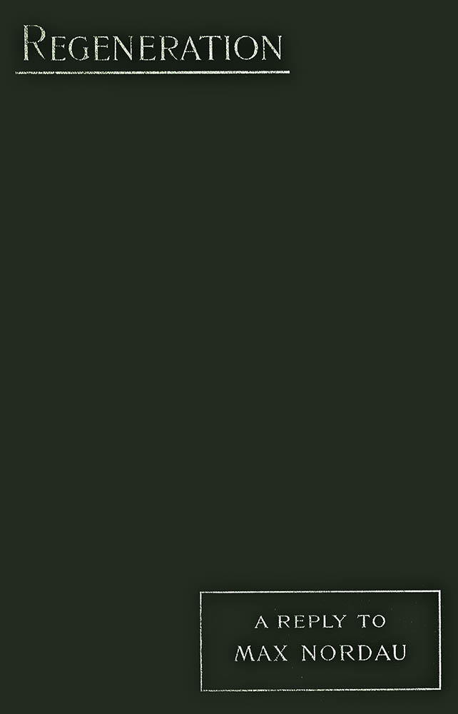 The author of Regeneration is successful in turning the flank of Nordau’s attacking forces at more points than one. He is able at times, without over-exertion, to convict Nordau not only of lack of knowledge, but of what is far worse—knowledge of things that are not true. His view of life is more sane and better-balanced than that of Nordau, despite an anti-Teutonic tendency that perhaps partakes of the nature of an argument ad hominem. The judgment of the average man who knows the history of the past two centuries will sustain him in holding that “there are a host of indications in all civilized countries pointing to an increase in intellectual power, moral strength, and æsthetic refinement.” Those to whom Lincoln applied the affectionate designation of “the plain people” have advanced and are advancing by tremendous strides in knowledge and refinement. They, and not a group or two of men and women in each of the capitals of Europe, are the real index to the degeneracy, or the contrary, of modern life. If democracy is to establish itself more widely and more efficiently as a form of government, it must rest upon the common sense of the plain people. So [xii]far from being influenced by the tendencies that Nordau exploits with so much vigour, it is not improbable that even the names of the representatives of most of those tendencies are unknown to them. Progress in education, in philanthropy, in commerce and industry, and in the comforts of life, has developed a seriousness and a sense of responsibility that have brought into many an English and American face the lines that distinguished the countenance of the typical Senator of Rome. The higher altruism of our time believes that life is not only worth living, but worth working for. Long ago Mr. Herbert Spencer remarked that the current conception of progress is vague, and that it is in a great measure erroneous. It takes in, he said, not so much the reality of progress as its accompaniments—not so much the substance as the shadow. Nordau, with all of the superficiality, the absence of any sense of proportion, and the lack of humour that so often mark the extreme specialist, has hardly come in sight of even the shadow.