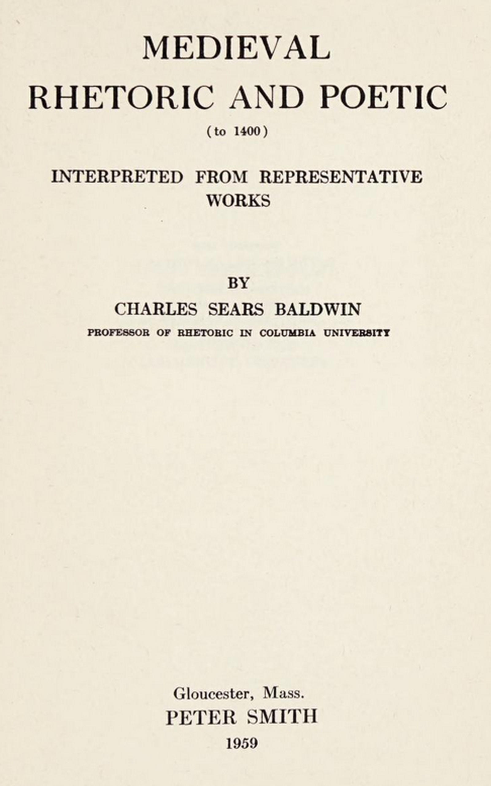 Title: Medieval rhetoric and poetic to 1400