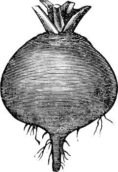 Turnip and winter Radish seed may be sown from the latter part of July to the middle of August. If the ground is reasonably free from weed seeds it is advisable to sow broadcast, otherwise it is better to sow in drills. In either case, it is well to remember that the plants should be, like the first settlers, without a near neighbor. The size and quality of the turnips and radishes will depend, to a great extent, upon thin sowing of the seed, or, what is still better,[192] a judicious thinning of the plants when young. The largest and sweetest turnips we have ever grown were of the Purple Top Strap-leaved variety, and were grown as a second crop after onions. The seed was sown broadcast, and no further attention given the plants except thinning while young. In the same manner and on similar soil we raised White and Black Spanish winter radishes of excellent quality, that weighed from four to seven pounds each. The Chinese Rose, though not so large, is the handsomest and one of the best winter radishes grown. The California Mammoth is a superb fall radish, but does not keep well in winter. The White Stuttgart is regarded as a summer radish, but I have had it, grown as a winter radish, to keep firm and solid till April.