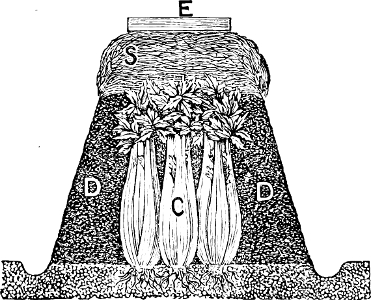 [26] The plan here described involves much unnecessary labor. It takes considerable time to dig the trenches, and, unless the soil of the garden were unusually deep, this depth of trench, fourteen inches, would bring up and mix with the surface a great deal of very poor subsoil. As rich soil cannot be found at this depth, a liberal supply of manure must be put down, for the roots to feed upon, where it will not be available for any future crop, unless the trenches were located in exactly the same spot each year. The increase in the labor of digging for storage would be considerable over the plan of surface culture as recommended in Mr. Darlington’s treatise. Miss Moll gives as a reason the greater heat in her locality, to overcome which we would suggest planting between rows of tall-growing sweet corn, and also recommend the use of some of the self-blanching varieties of celery.—Ed.