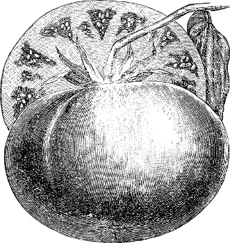 [22] As stated, these Tomatoes were undoubtedly originated from the same stock. We received the Turner Hybrid in the spring of 1884, a small packet of seed being sent us by one of our customers—Mr. J. W. Turner, of Iowa. This seed we had planted, and were surprised at the wonderful growth, size and quality of the variety, but unfortunately there were two distinct colors: some were a rich deep red and some a pale pink, of a not very attractive shade. So we grew it carefully for another season before sending out, that we might have them all of the best color. This, we believe, is not the case with the Mikado, as in our trial the two colors were present, although they both are evidently of the same origin.—Ed.