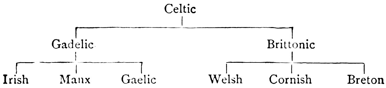 There are two other outstanding names very familiar to the student of Celtic, the erudite Standish Hayes O’Grady, author of Silva Gadelica, and friend of Windisch for many years, and Mr. Alfred Nutt, an authority on folk-lore and literary antiquities. Besides Rhys, Wales has produced such indefatigable workers as Gwenogfryn Evans and Canon Silvan Evans, the veteran of Welsh philology; Professors Morris Jones and Lewis Jones, of Bangor; the late Charles Ashton; Professor Anwyl of Aberystwyth, and Mr. Brynmor Jones; while the Isle of Man has Mr. A. W. Moore and Mr. Kermode.