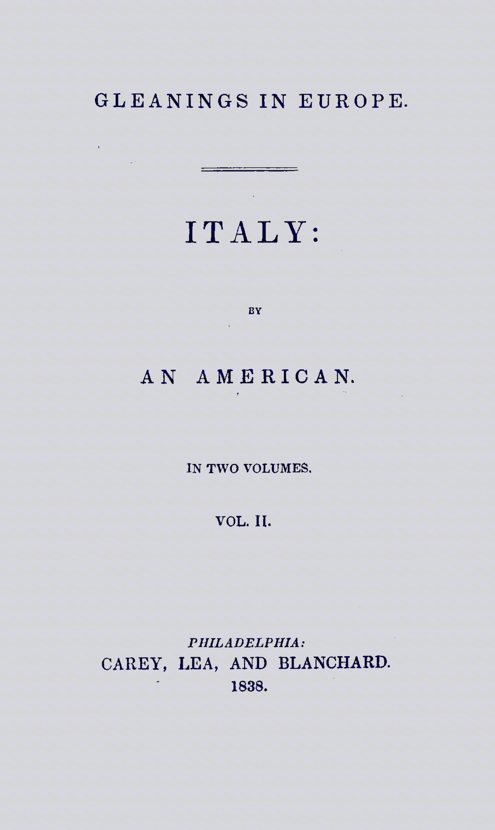 The society of Italy, which is but another word for the nobles of the country, so far as I have seen it, has the general European character, modified a little by position. They have a general acquaintance with literature, without being often learned; and there is a grace about their minds, derived from the constant practice of contemplating the miracles of art, that is rather peculiar to them. An Italian gentleman is more gracious than an Englishman, and less artificial than a Frenchman. Indeed, I have often thought that in these particulars he is the nearest a true standard of any gentleman of Europe. There is a sincerity in this class, also, that took me by surprise; a simplicity of mind rather than of manner, that is not common on the other side of the Alps. Notwithstanding what has been said and written about les esprits fins, I question if the trait can be 239properly imputed to the general Italian character. After all this, however, I freely admit the limited nature of my own observation, and you will not attach to these opinions more value than they deserve; still, they merit more attention than the loose notions on the same subject that have been thrown before the world, unreflectingly and ignorantly, by most of our travellers.