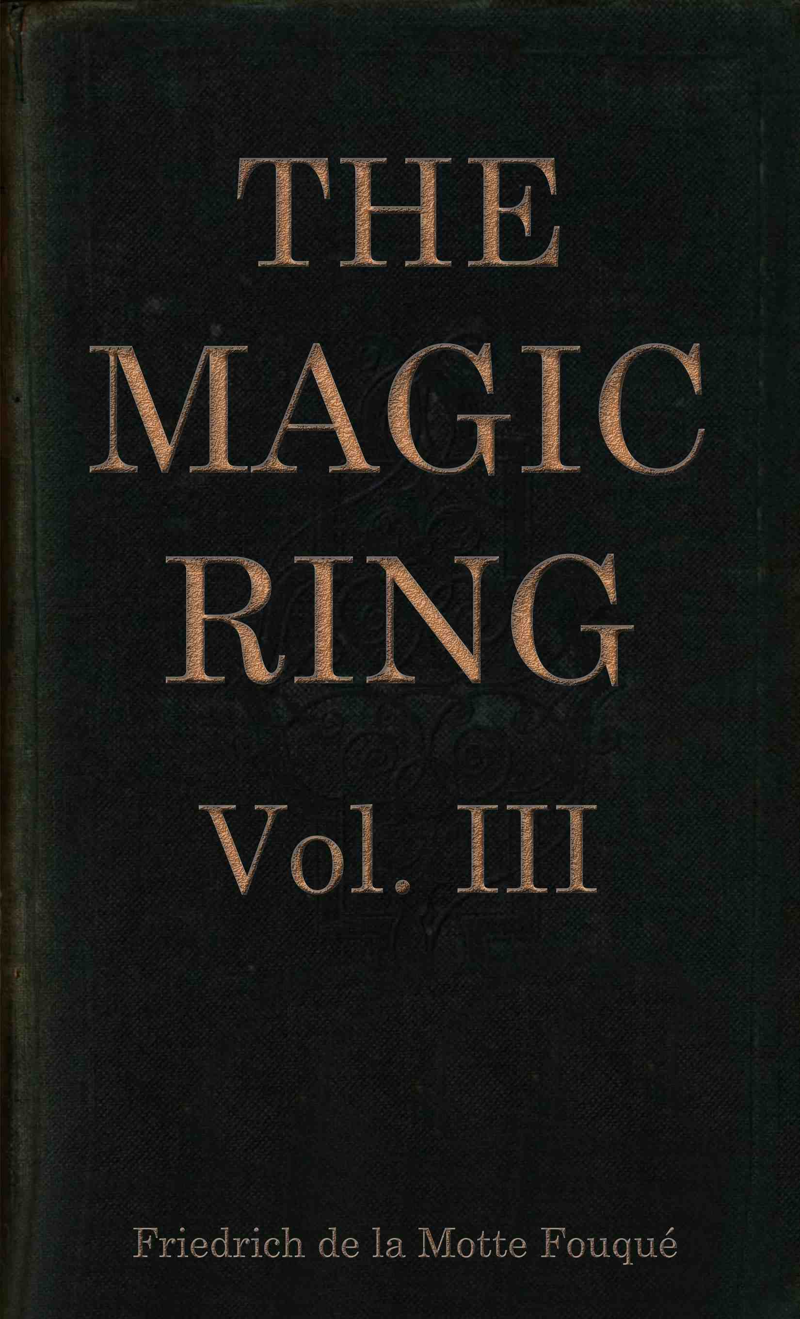 Then it seemed as if Theobaldo sought once more to rouse himself for a new attack. Grinning in wrath, he waved the Magic Ring high over his head; but the damsel again called out in the same silvery tones, “Halt! against such an adversary as thou, the holy father of the church has afforded me this means of protection!” With these words, she took out a golden phial from her bosom, and, advancing towards Theobaldo, threw part of its contents, which shone like rain in the sunlight, towards him; whereupon the once so potent enchanter fell trembling on his knees. “That is not enough,” said the maiden; and with these words, a strange severity came over her beautiful features. “Deliver up the ring!” and perceiving that Theobaldo still lingered, and grinned in his disappointment and terror, she held out the phial, and continued, “Or shall I once more prove the strength of this, which, as thou well knowest, is more powerful than all the spells of which the ring has made thee the possessor? In such case, however, I cannot answer for the consequences which thou drawest on thine own head.” Hereupon Theobaldo came up to her trembling, and placed the Magic Ring in her beautiful snow-white hand, all the while keeping his eyes fixed on the ground.