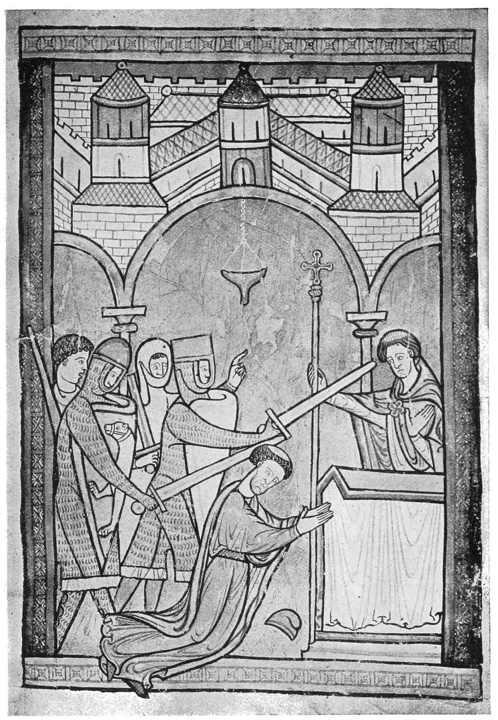 Thomas, who was born on 21st December 1118, was the son of Gilbert Becket by Maud his wife. His parents, who were both of Norman extraction[21] but{55} had settled in London before his birth, belonged to the middle class and were comfortably off, and by them he was sent to the school of the canons of Merton Priory. While he was still quite young his mother died, and not long afterwards his father, who was in very reduced circumstances owing to losses by fire, followed her. Fortunately for himself Thomas, who was a good-looking boy of much promise, had attracted the attention of a powerful baron, Richer of L’Aigle, who had been in the habit of putting up at the Beckets’ house whenever he came up to London. Richer interested himself in the orphan, sending him to school in London and allowing him to spend his holidays with him in the country, presumably at his Sussex castle of Pevensey. Here Thomas practised hunting, hawking, and other manly sports, on one occasion nearly losing his life in the endeavour to rescue his falcon from a mill-stream. His patron appears to have sent him to study in Paris, and on his return he entered the service of his kinsman, Osbern Huitdeniers, one of the leading citizens of London. After some three years of official life in the city he determined to try a field more promising for his ambitions. Once again his father’s hospitality proved the means of his advancement, two of Gilbert’s former guests, the Archdeacon Baldwin and his brother, Master Eustace, introducing him to the notice of Archbishop Theobald. The archbishop, finding that the young man’s father had come from his own native town of Thierceville, gladly{56} enrolled him in his household and took a kindly interest in him. There were at this time at the archbishop’s court many men of distinction and learning, and one of these, Roger of Pont l’Evêque, afterwards Archbishop of York, jealous of the favour shown to Thomas, whose powers lay in the direction of showy brilliance rather than sound scholarship, did all that he could to injure and annoy him. Twice Roger persuaded the archbishop to dismiss the young man, but on each occasion Theobald’s brother, Walter, Archdeacon of Canterbury, took up his cause and secured his restoration to favour. As early as 1143, when he was in his twenty-fifth year, Thomas rendered his patron good service at the papal court in the matter of annulling the legatine commission formerly granted to Bishop Henry of Winchester. About this date he appears to have attended the famous law schools at Bologna, and afterwards at Auxerre. By this time he was beginning to become a person of importance; the churches of St. Mary-le-Strand and Otford, and prebends in St. Paul’s and Lincoln had been bestowed upon him, and in March 1148 he, with his rival, Roger of Pont-l’Evêque, attended the archbishop on his venturesome sail across the Channel to the Council of Rheims. Three years later, in 1151, Becket achieved a further diplomatic success in defeating Stephen’s efforts to obtain papal recognition for his son Eustace, and in 1154, when Roger of Pont-l’Evêque became Archbishop of York, Thomas succeeded him as Archdeacon of Canterbury.