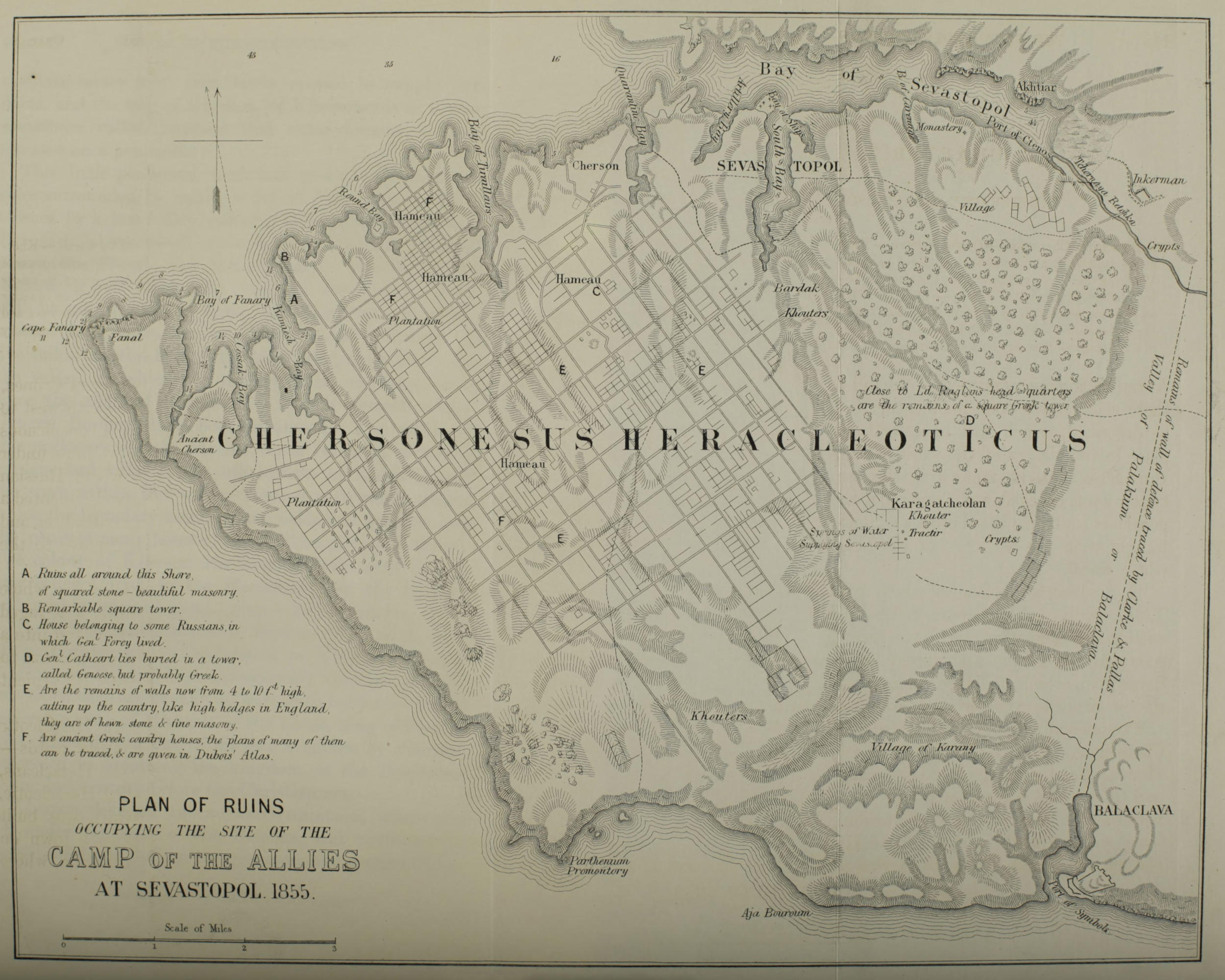 | The Heracleotic Chersonese—Origin of name—Defended by a wall—Kherson—Its history and remains—House of Lamachus—The predecessors of Vladimir and their relations with Constantinople—Account of the siege by Vladimir, taken out of Nestor—Vladimir’s Baptism—Springs of water—Kherson destroyed by Lithuanians—The bays between Sevastopol and Cape Chersonese—Cape Partheniké—The Tauric Diana—The monastery of St. George—Bustards on the Chersonese | 148 |
