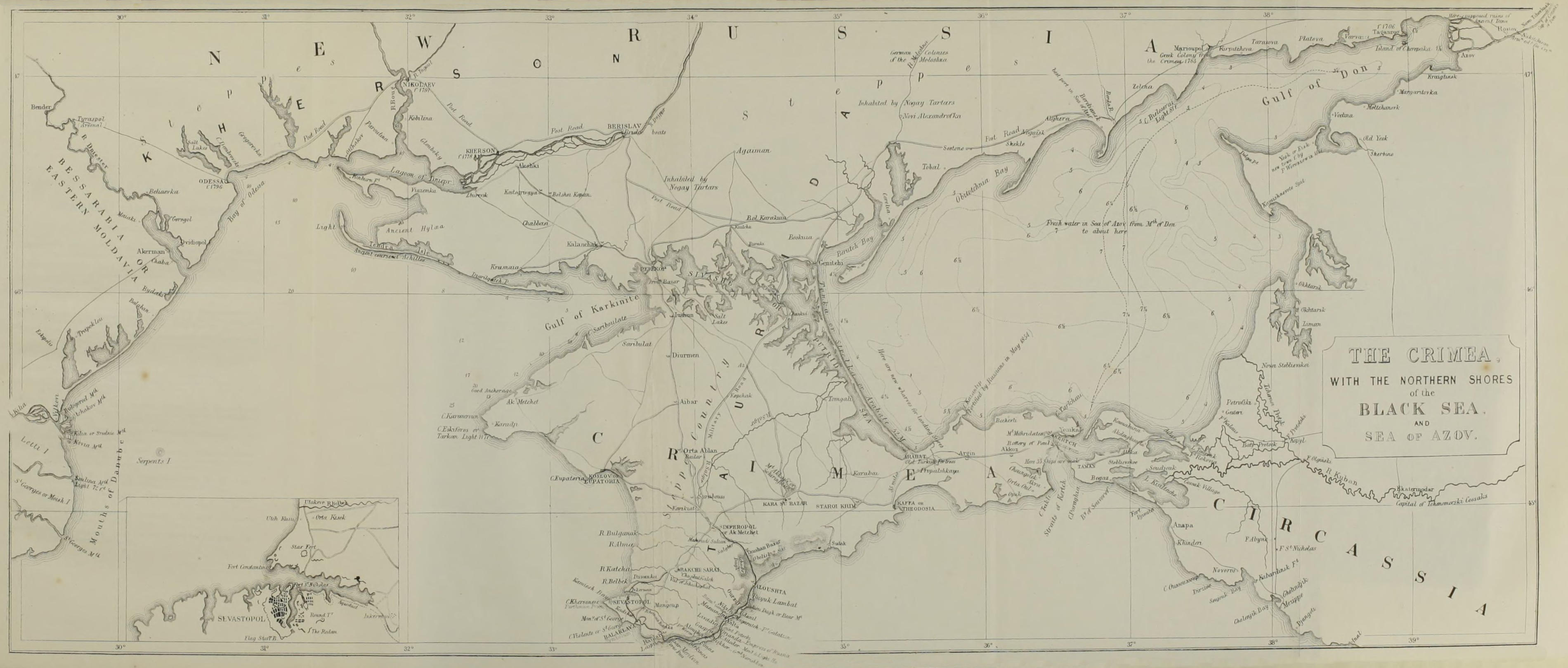 My original intention was to have compiled a summary of the history of the Caucasus, where I spent nearly three years, and to which a short account of the Crimea would only have served as an introduction. The increasing interest attaching to the latter subject, however, made me pay more attention to it; so that I now offer to the public some notices on that country and the shores of the Sea of Azof, without being able to add anything upon what I hoped to make the main subject of my inquiry. Some chapters upon the Caucasus are already partly written, but I have not had sufficient time to prepare them for insertion in the present volume, although intimately connected with it. They relate to a country replete with the deepest interest, and I hope that, ere long, some more competent hand than mine may vindicate the character of those heroic mountaineers, whom many are accustomed unjustly to stigmatize as barbarians. Though unlettered, they possess equal claims to our admiration with our own Saxon and Norman ancestors, or with the Swiss in the days of Tell, for they possess that stubborn love of independence and that “spirit of divinest liberty,” which is the root of all good.