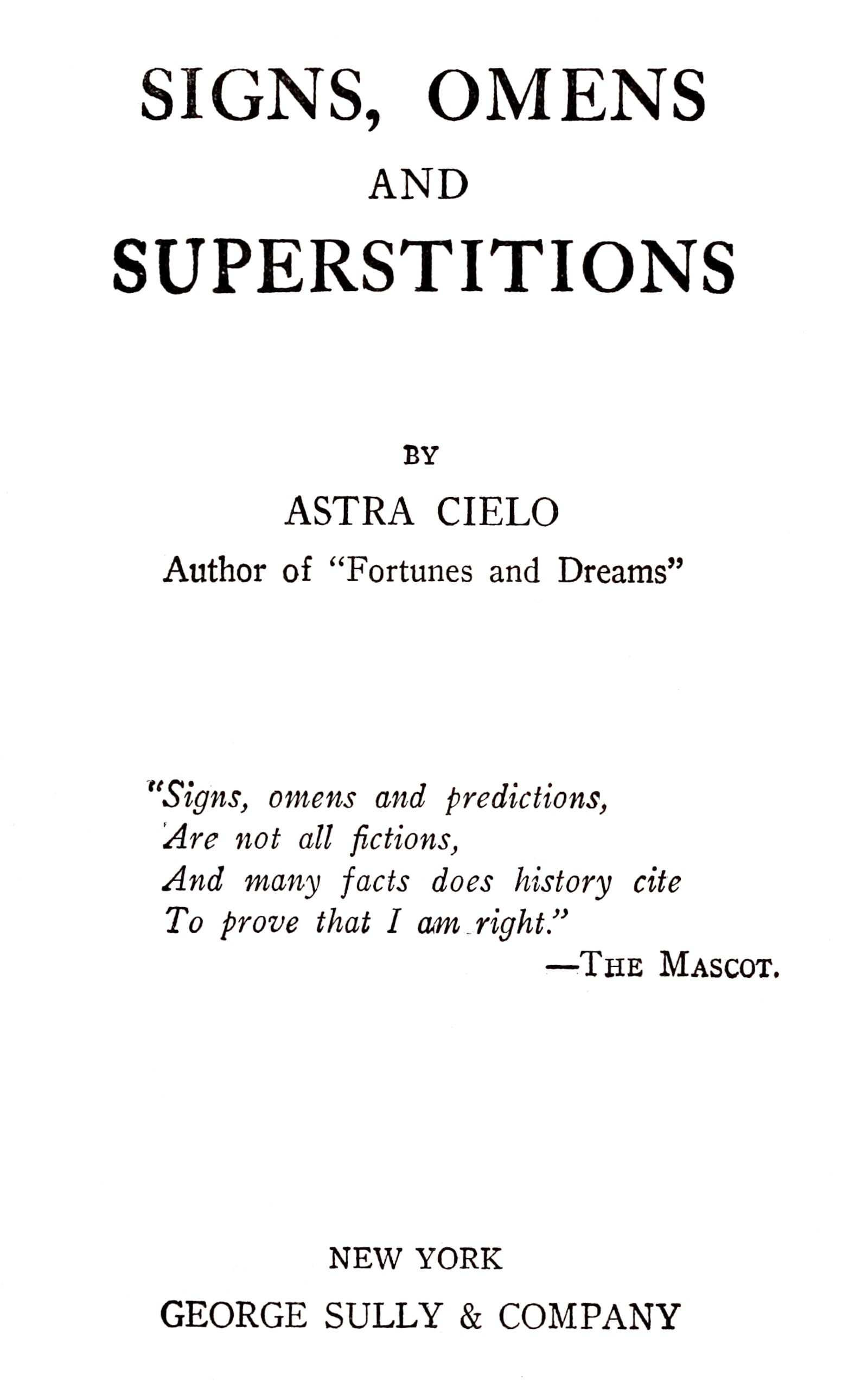 Title: Signs, omens and superstitions