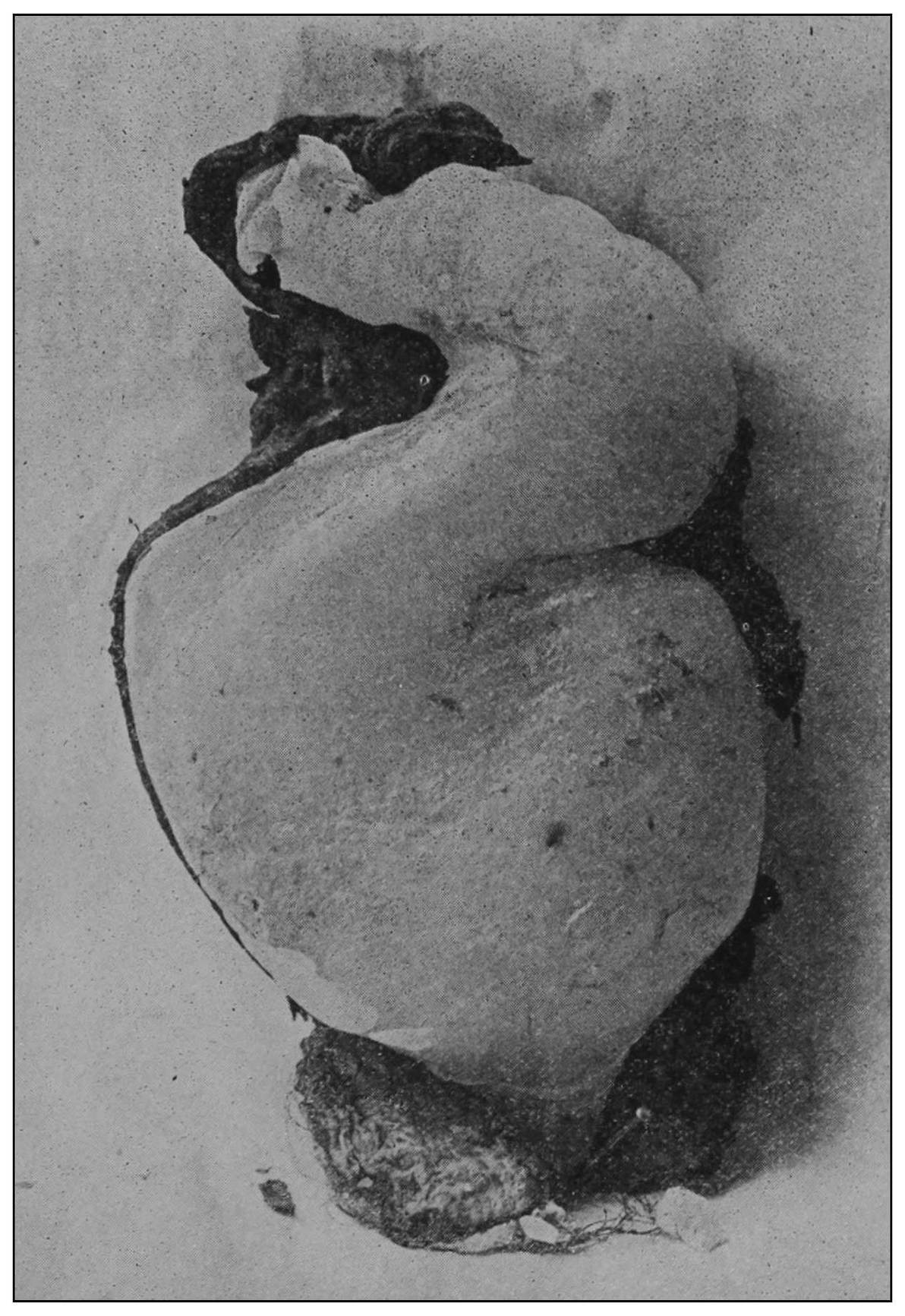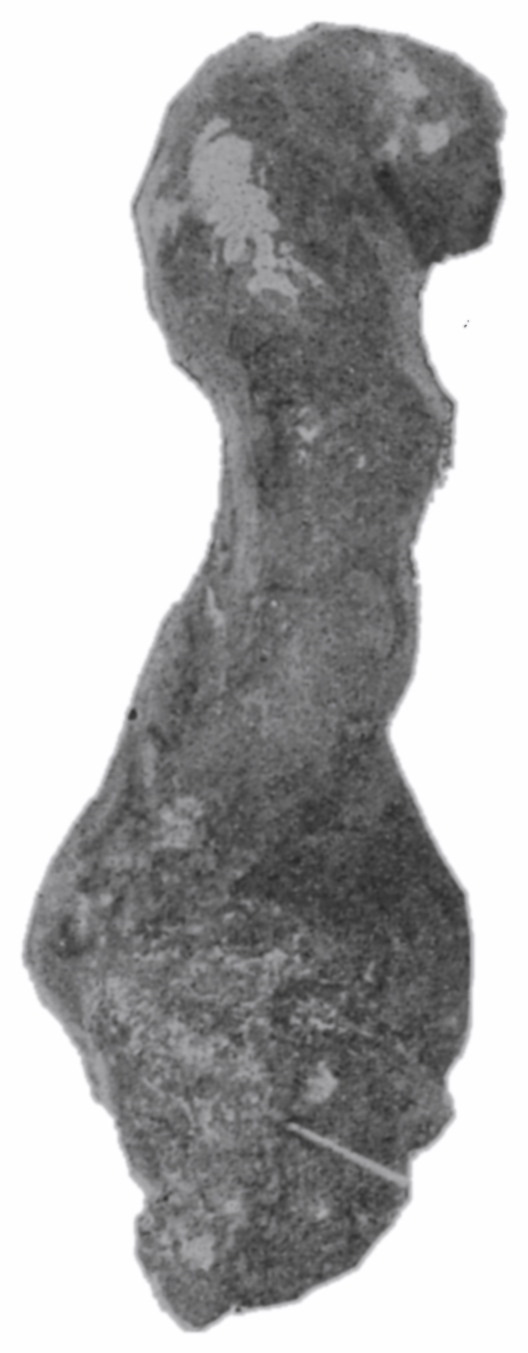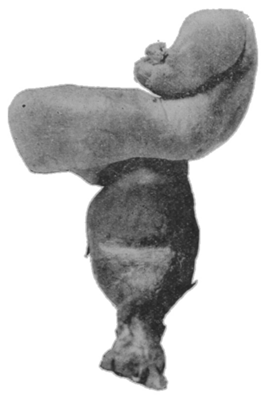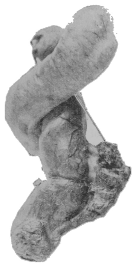 | 53. | A five-months fetus. A photograph showing a paraffin cast-filled rectum in situ; the other organs having been dissected away |