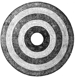 [19] In order to see this kind of image as distinctly as possible, it is desirable to avoid all movements of the eye. On a large sheet of dark grey paper a small black cross is drawn, the centre of which is steadily viewed, and a quadrangular sheet of paper of that colour whose after-image is to be observed is slid from the side, so that one of its corners touches the cross. The sheet is allowed to remain for a minute or two, the cross being steadily viewed, and it is then drawn suddenly away, without relaxing the view. In place of the sheet removed the after-image appears then on the dark ground.