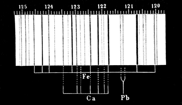 [27] Or perhaps also to oxygen. The line occurs in the spectrum of atmospheric air, and according to H. C. Vogel’s observations was wanting in the spectrum of pure oxygen.