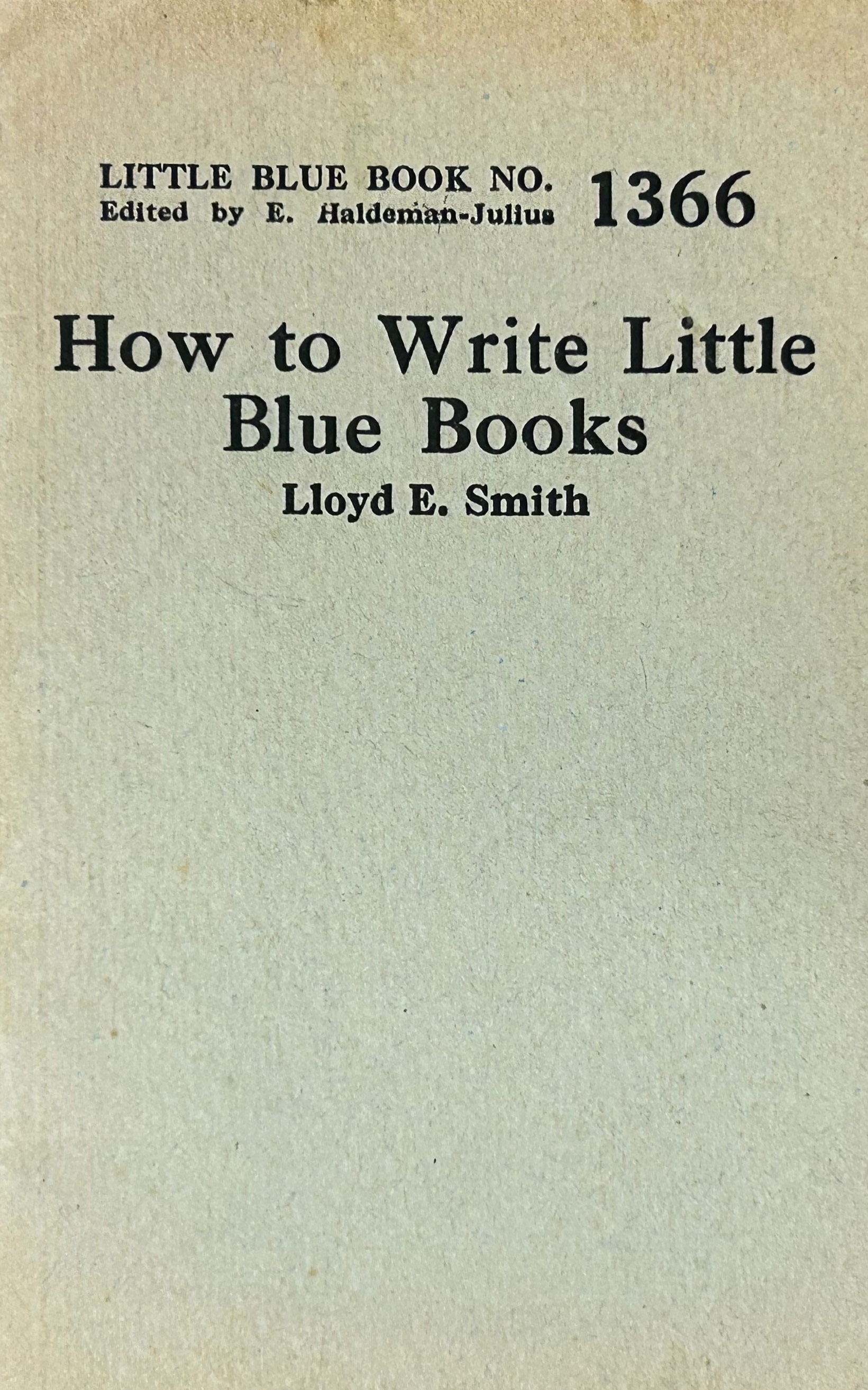 Telling would-be contributors to the five-cent pocket series How to Write Little Blue Books, is, by rights, the editor’s—E. Haldeman-Julius’s—job. For he is the man who ultimately accepts the manuscript, if it is acceptable, and he signs the check which each author awaits with eager anticipation. But he says that going into the details of how manuscripts should be written for this ever growing series does not appeal to him. So far he has preferred to find and buy the product of those writers who are able, without more than a preliminary word or two, to turn out exactly what he wants. So he has delegated me to do the job for him, and he has charged me to be explicit, exhaustive, and extremely understandable.