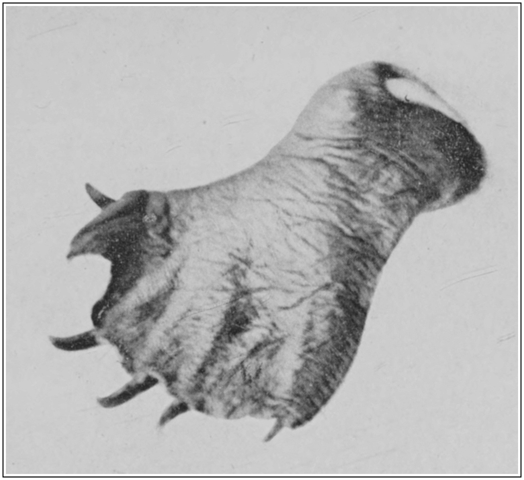 | SOLE OF LEFT HIND FOOT, SHOWING SPUR IN ACTION |