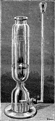 The safety-tube, T, which is attached to the electrolyzer, permits of the escape of the hydrogen which is produced during the chemical reaction, and fixes, through an alkaline solution contained in the reservoir, B, the chloride whose escape might discommode the operator.
