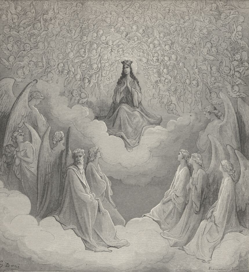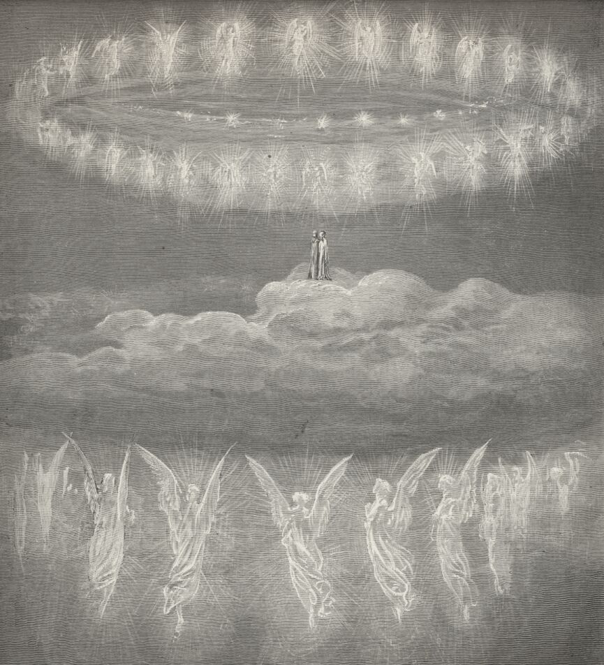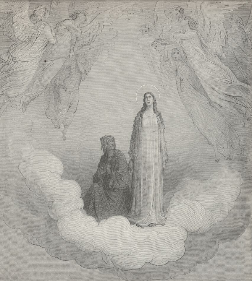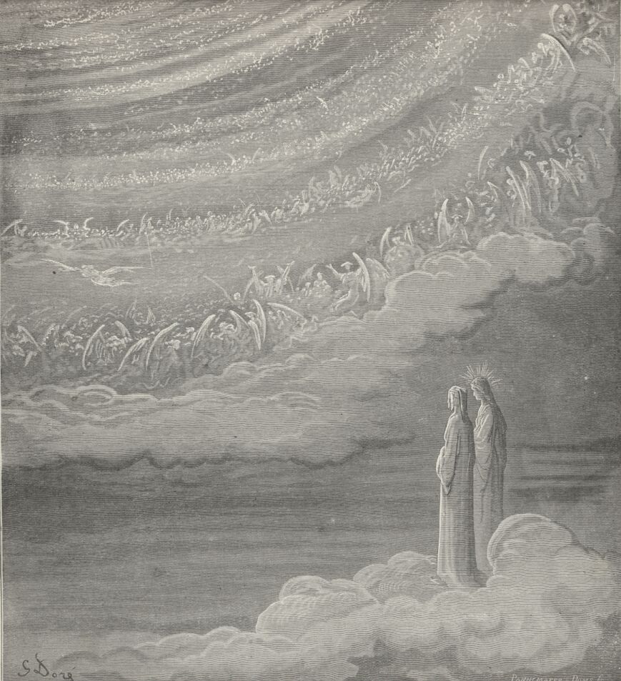 Lo! Where, with Beatrice, many a saint