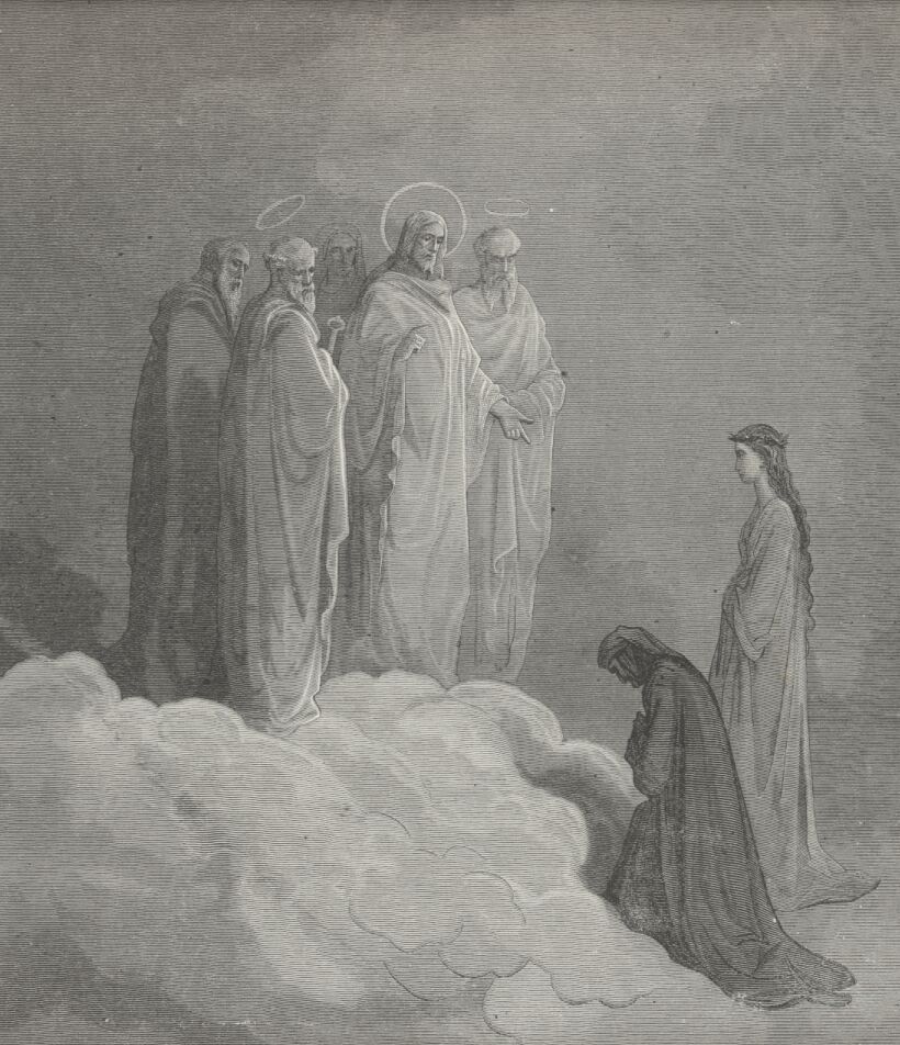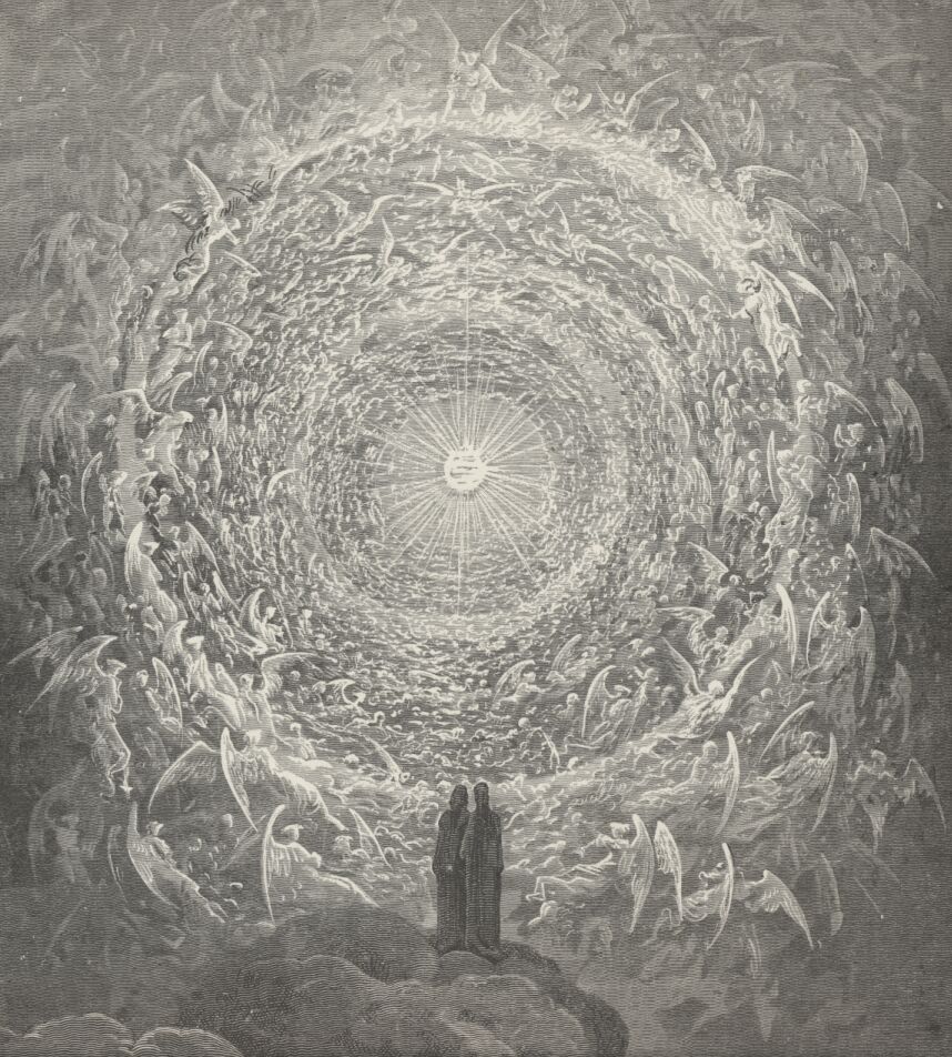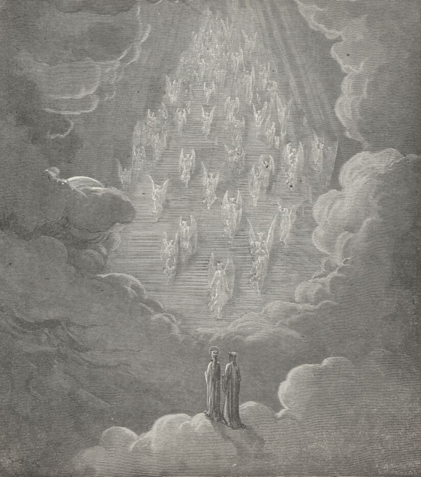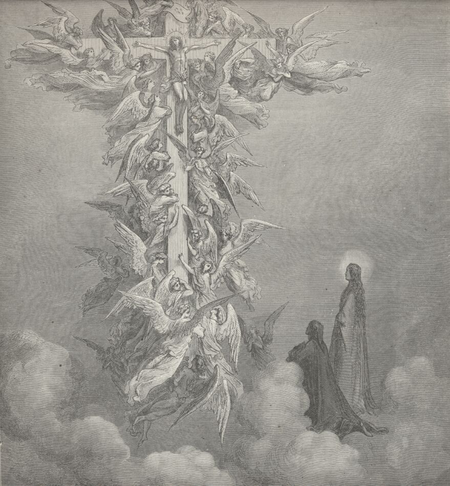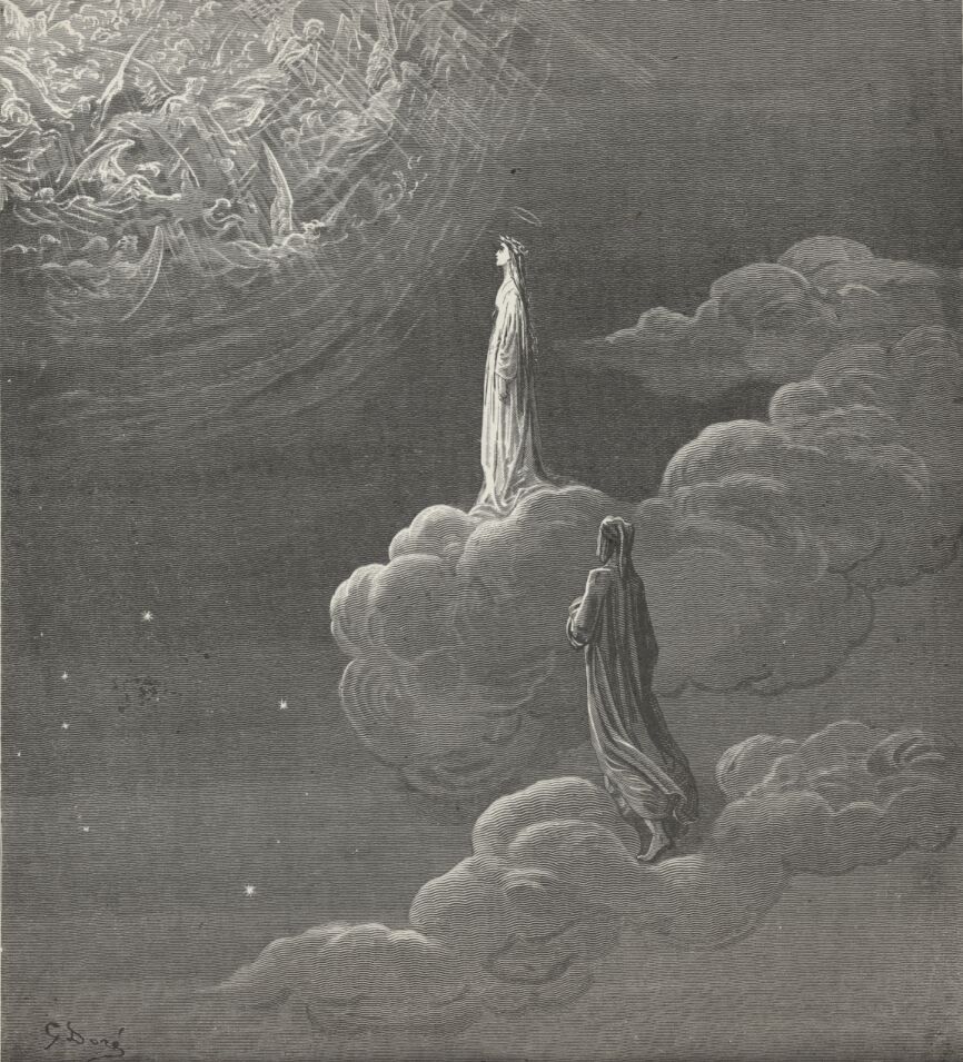 Lo! Where, with Beatrice, many a saint