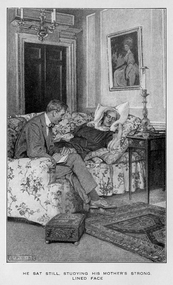 He skirted the lake, and began to mount the steps, and flagged paths of the formal garden. Suddenly as he approached the garden front he saw that two windows of his mother's sitting-room were open, and that some one—a figure in black—was sitting in a high-backed arm-chair beside one of them. His mother!—up?—at seven o'clock in the morning? Yet was it his mother? He came nearer. The figure was motionless—the head thrown back, the eyes invisible from where he stood. Something in the form, the attitude—its stillness and strangeness in the morning light—struck him with horror. He rushed to the garden door, found it open, dashed up the stairs, and into his mother's room.