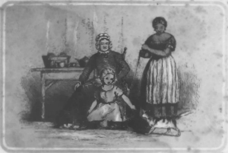 Mammy was a firm believer in signs of good and evil import; thus, if, in dropping the scissors, they stood up erect on the point, she always said that visitors were coming—a sign that rarely failed, as we were seldom a day without them. Once I had wished very much for a large wax-doll. My dreams were beautified with waxen images of immense size, whose china blue eyes, long flaxen curls, and rosy [pg 041] cheeks, presented a combination of charms that took my heart by storm. I sat one night, as usual, by the nursery fire; my thoughts fixed on this all-engrossing subject, when I ventured to communicate them to Mammy, and ask her if she thought I ever would become the enviable possessor of such a doll.
