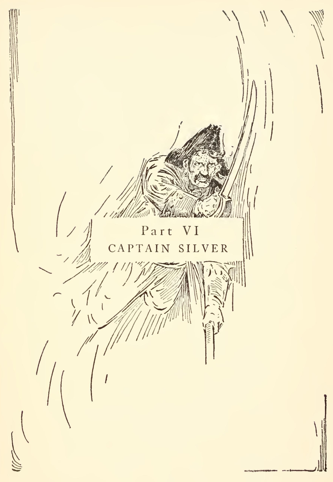 Well, there we stood, two on one side, five on the other, the pit between us, and nobody screwed up high enough to offer the first blow. Silver never moved; he watched them, very upright on his crutch, and looked as cool as ever I saw him. He was brave, and no mistake.