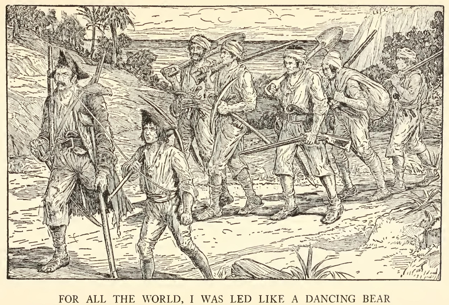 His stories were what frightened people worst of all. Dreadful stories they were—about hanging, and walking the plank, and storms at sea, and the Dry Tortugas, and wild deeds and places on the Spanish Main. By his own account he must have lived his life among some of the wickedest men that God ever allowed upon the sea, and the language in which he told these stories shocked our plain country people almost as much as the crimes that he described. My father was always saying the inn would be ruined, for people would soon cease coming there to be tyrannized over and put down, and sent shivering to their beds; but I really believe his presence did us good. People were frightened at the time, but on looking back they rather liked it; it was a fine excitement in a quiet country life, and there was even a party of the younger men who pretended to admire him, calling him a “true sea-dog” and a “real old salt” and such like names, and saying there was the sort of man that made England terrible at sea.