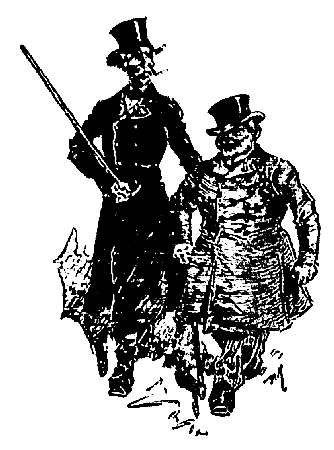 Le brigadier Badoit et le sergent de ville Foiret s'approchèrent d'un air capable. Ayant remarqué, depuis longtemps, qu'il est infiniment moins dangereux d'arrêter un citoyen paisible que de se jeter à la tête d'un cheval emporté, ils n'hésitèrent pas à abattre une main solide, du poids d'un gigot d'agneau, sur chaque épaule de M. Eusèbe Pécrus.