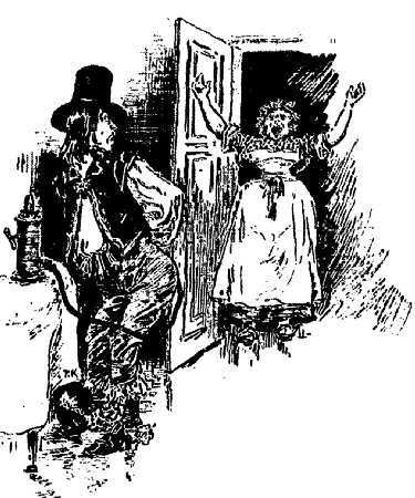 A cette impertinence ingénue, Monsieur le marquis, furieux, allait vertement répondre, quand Mlle Angélique qui se trouvait, comme par hasard, derrière la porte, bondit toute joyeuse et, prenant les mains de l'insolent: «—Ah! Monsieur, fit-elle, merci!»