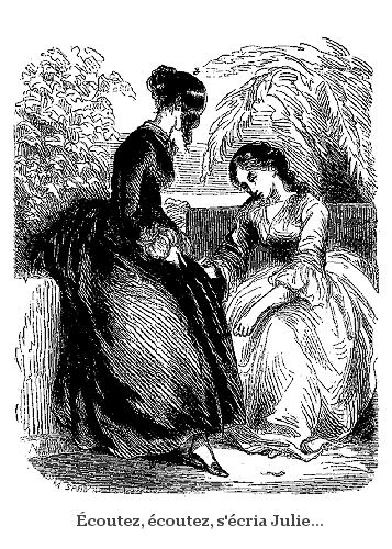 Oh! Alice, quel dénouement à notre aventure! et que mon roman me plaît mieux ainsi! Comme vous avez dû rire, malicieuse amie, depuis le commencement de cette longue et absurde lettre! Mais je ne la déchirerai pas: car, au milieu de mes extravagances, je vous ai dit tout ce que je pense de lui, tout ce que je sens pour lui, et vous verrez bien que mon coeur avait deviné ce que mon esprit, incroyablement obtus en cette circonstance, ne pouvait pas pénétrer. Je suis sûre qu'il vous a écrit en même temps que moi tout ce qui se passait entre nous, et que vous allez recevoir nos deux versions à la fois. Je veux continuer la mienne afin que vous compariez; et, si ce petit démon vous fait quelque mensonge, soyez sûre que c'est moi qui dis la vérité.
