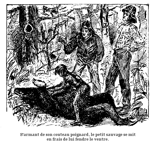 Ce fut le petit sauvage qui secoua le premier l'espèce de paralysie qui immobilisait les trois spectateurs....