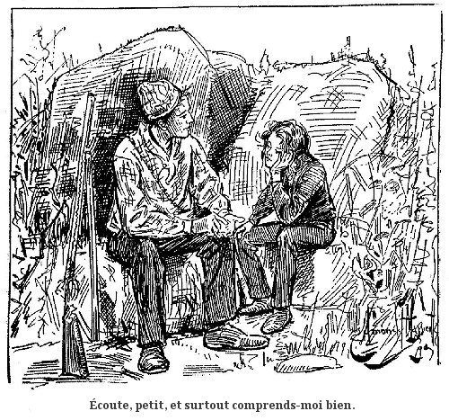 —Ne pleure pas, petit.... Nous aurons bien soin de toi.... Il y a encore de là place pour un chez le papa Labarou.... Tu vas venir avec nous.... Tu seras de la famille....