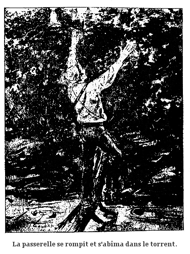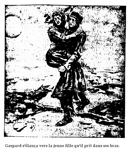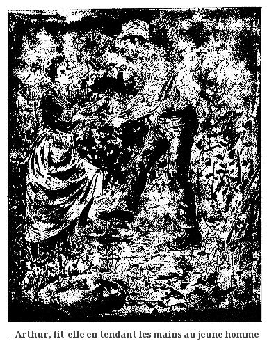 Tout le monde avait suivi des yeux la jeune fiancée,—si près de s'appeler la jeune épousée,—et ce tut une exclamation de stupeur quand on la vit dans les bras de celui qu'on croyait mort,—d'Arthur Labarou, surgi brusquement des saules bordant la rive.