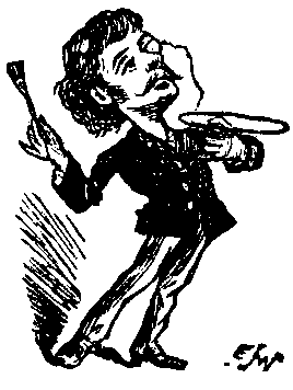 A Vendor. Now all you who are fond of a bit o' fun and amusement, jest you stop and invest a penny in this little article I am now about to introdooce to your notice, warranted to make yer proficient in the 'ole art and practice of Photography in the small space of five seconds and a arf—and I think you'll agree with me as it ain't possible to become an expert photographer at a smaller expense than the sum of one penny. 'Ere I 'old in my 'and a simple little machine, consistin' of a small sheet of glorss in a gilt frame. I've been vaccinated five 'underd-and-forty-one times, never been bit by a mad dog in my life, and all these articles have been thoroughly fumigated before leaving the factory, therefore you'll agree with me you needn't be afraid o' catchin' the Inflooenza. They tell me it's nearly died out now—and no wonder, with everythink a cure for it—but this article is a certain remedy. All you've got to do is to bite off a corner of the glorss, takin' care to be near a public 'ouse at the time, chew the glorss into small fragments, enter the public 'ouse, call for a pot o' four ale, and drink it orf quick. It operates in this way—the minoot portions of the glorss git between the jaws of the microbe, preventin' 'im from closin' 'is mouth, and thereby enablin' you to suffocate 'im with the four ale. (To the Reader.) Will you allow me to show you how this little invention takes a photograph, Sir? kindly 'old it in your 'and, breathe on it, and look steadily on the plate for the space of a few seconds. (All of which the Reader, being the soul of courtesy, obligingly does—and is immediately rewarded by observing the outline of a donkey's head produced upon the glass.) Now if you'll 'and that round, Sir, to allow the company to judge whether it ain't a correct likeness— [But here the Reader will probably prefer to pass on.