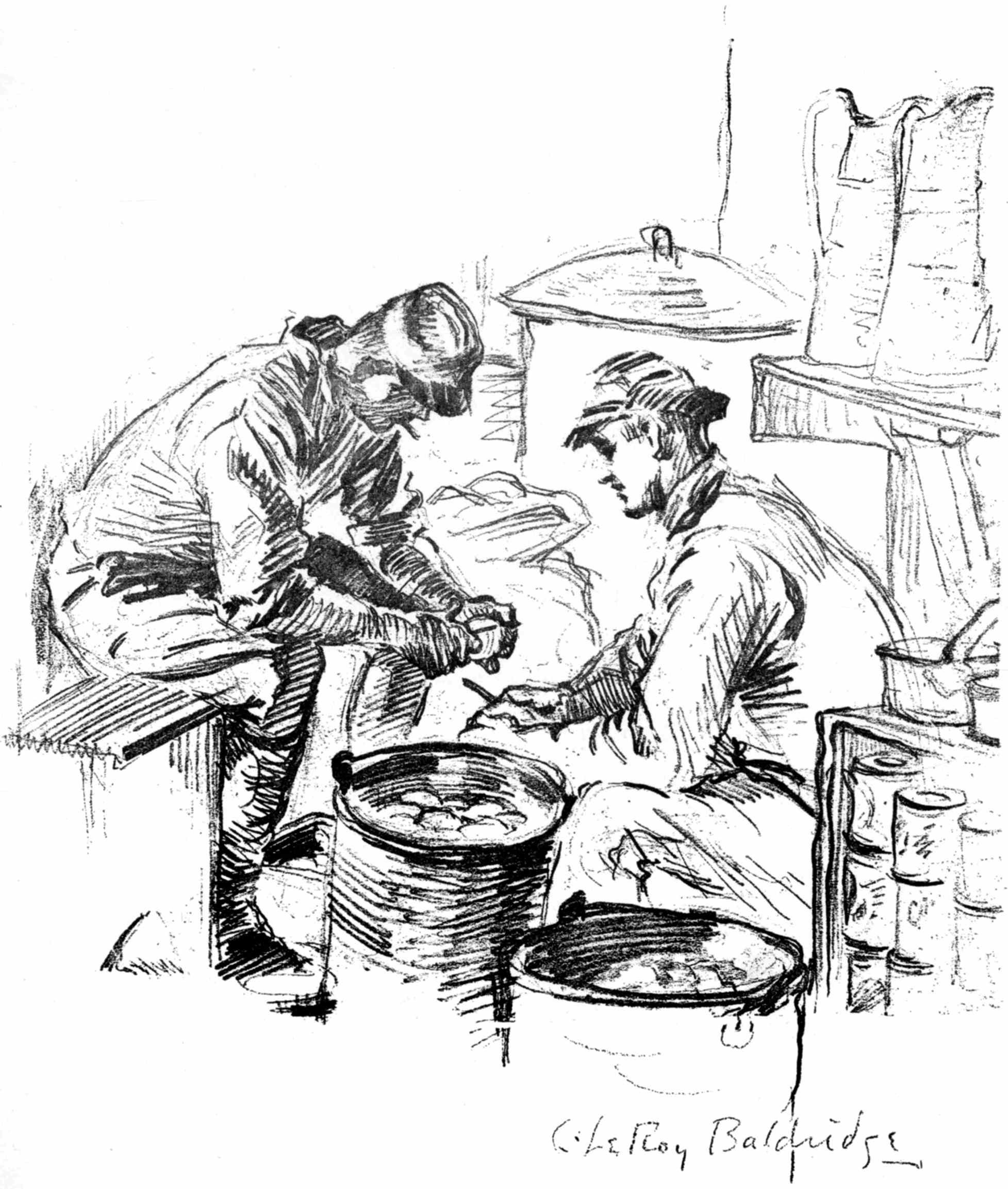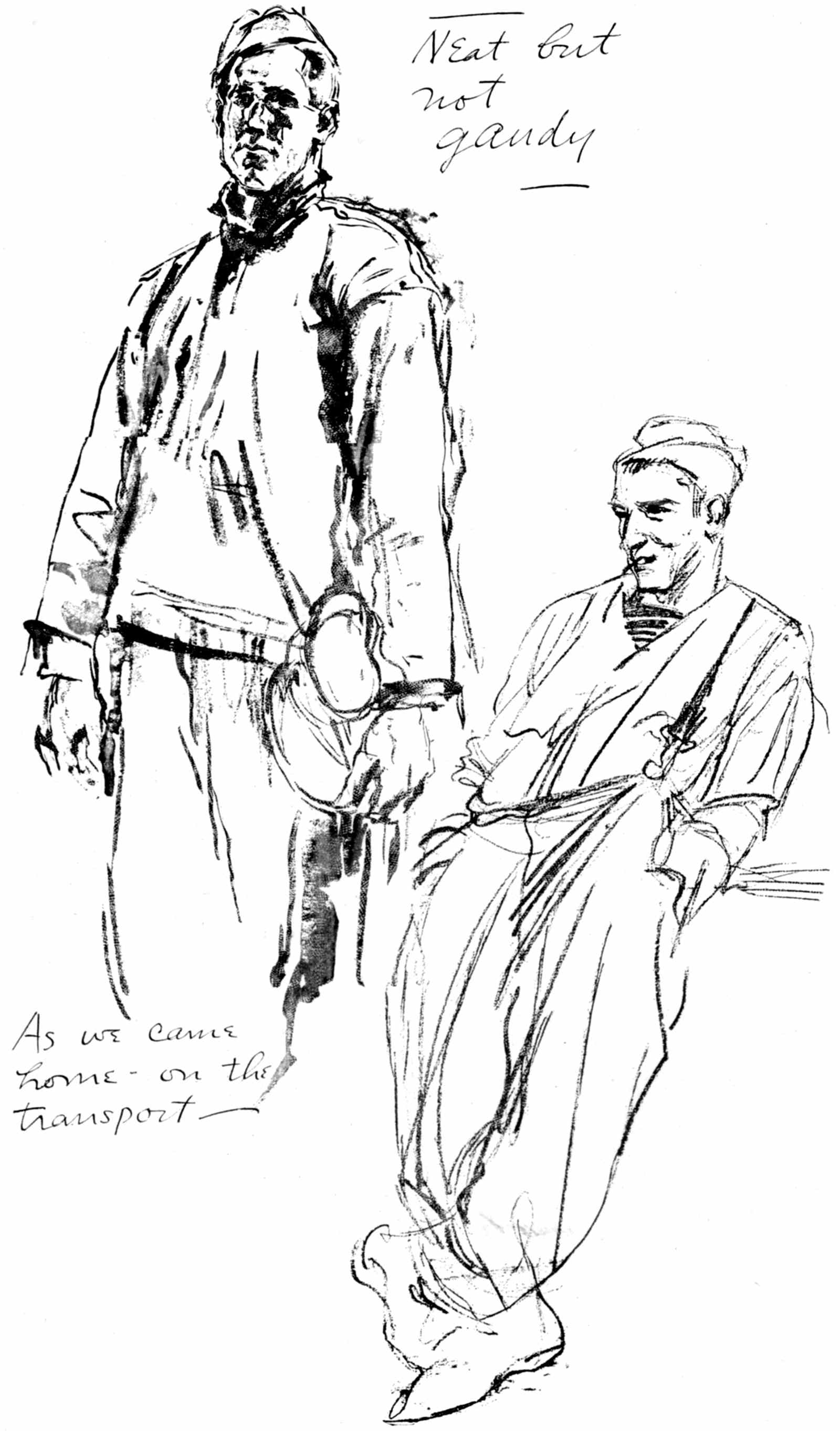 These Sketches were made during a year's service as a camion driver with the French army in the Chemin-des-Dames sector and a year's service with the A.E.F. as an infantry private on special duty with "The Stars and Stripes," the official A.E.F. newspaper. Most of them were drawn at odd minutes during the French push of 1917 near Fort Malmaison, at loading parks and along the roadside while on truck convoy, and while on special permission to draw and paint with the French army given me by the Grand Quartier Gènèral during the time I was stationed at Soissons. The rest were drawn on American fronts from the Argonne to Belgium as my duties took me from one offensive to another.
