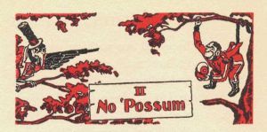 "Becaws——" said Mr. Crow. And then he corrected himself once more. "Because," he replied, "no 'possum ever came so far North as this. I've spent a good many winters in the South, and I[Pg 3] ought to know. And besides," he added, "although a 'possum can hang by his tail, there never was one that could throw a stick or a stone. And I ought to know, for I've spent a good many winters in the South, where the 'possums live."