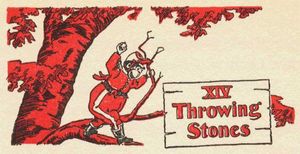 "Oh, no!" the other replied. "I didn't throw anything at you, sir. I merely dropped something on your back."