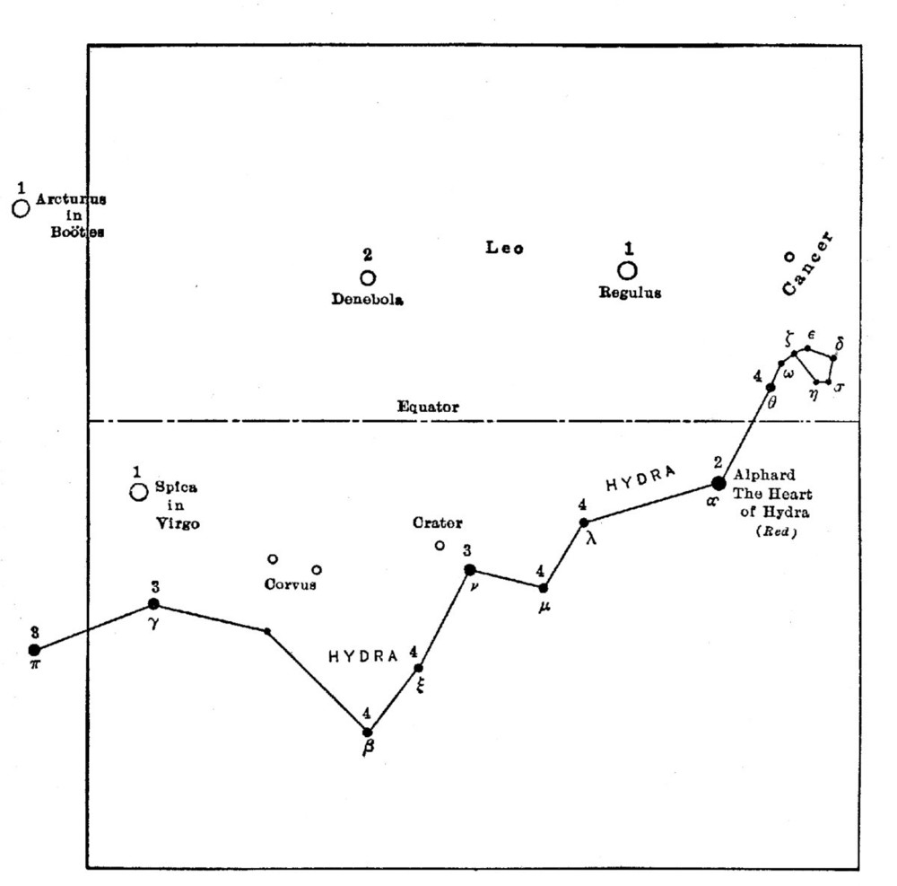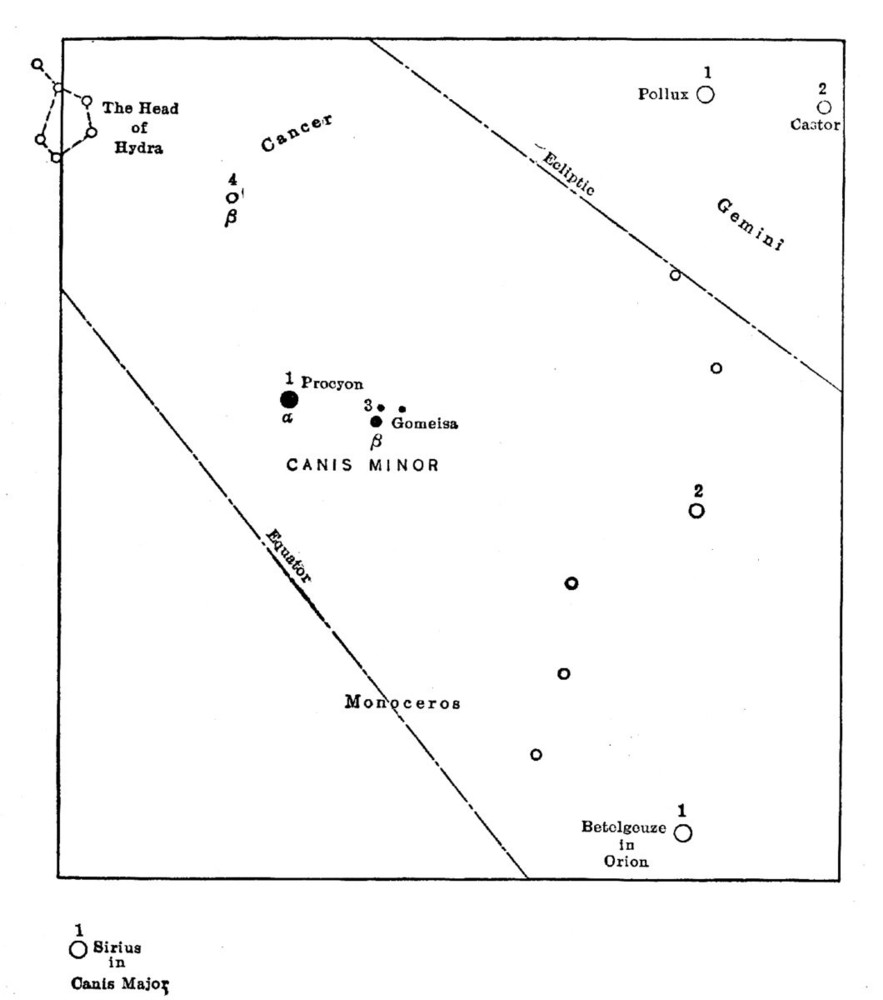 | Located by a line drawn from Gemini to Cancer and prolonged. | ||