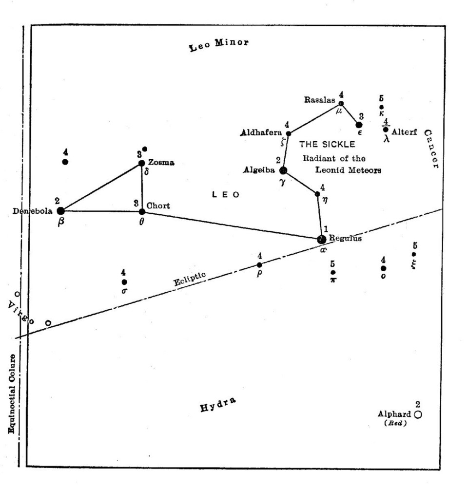 | Position indicated by drawing a line through designated stars in Leo. | ||