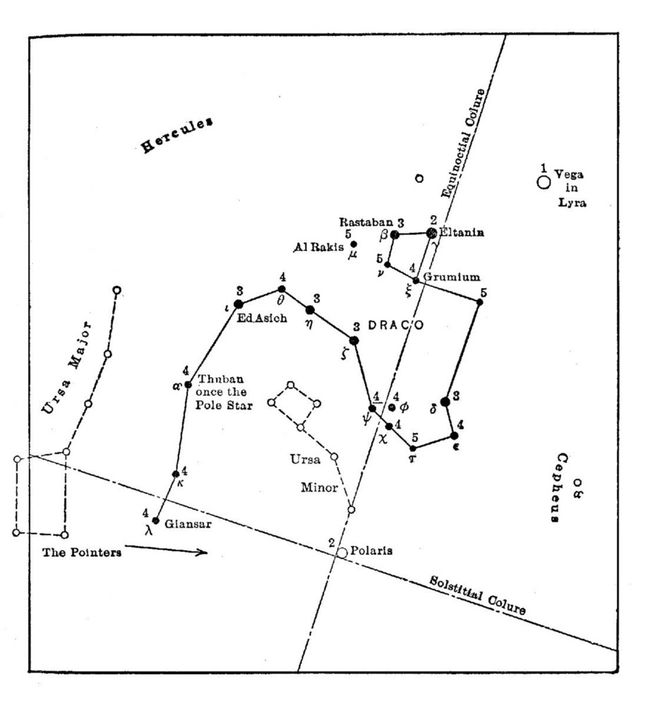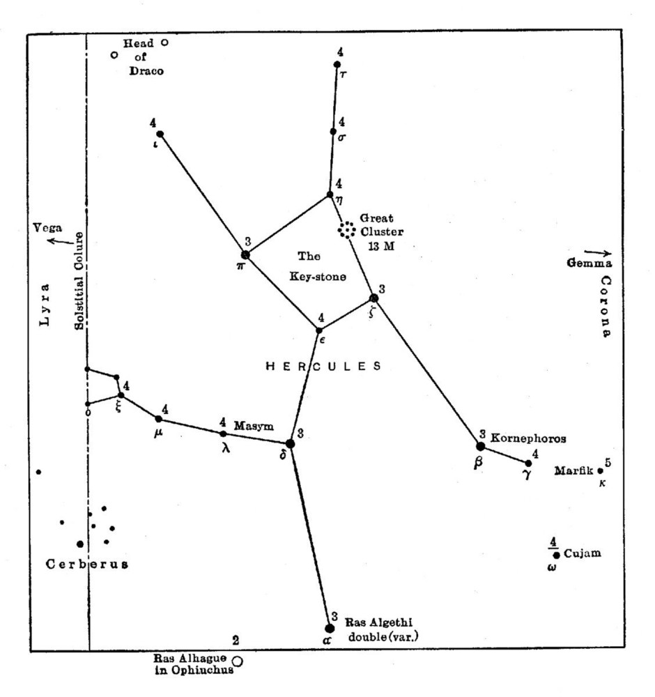 | Vega, its brightest star, is 12° S.W. of the Dragon's head. | ||
