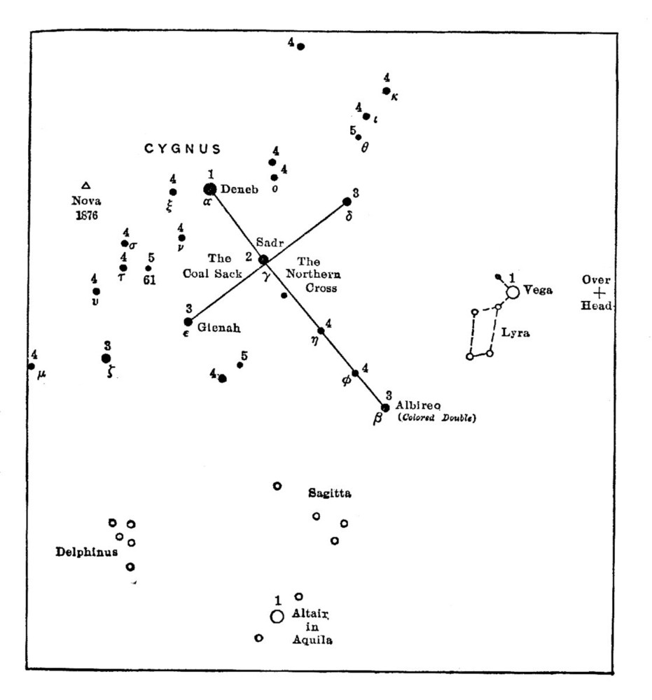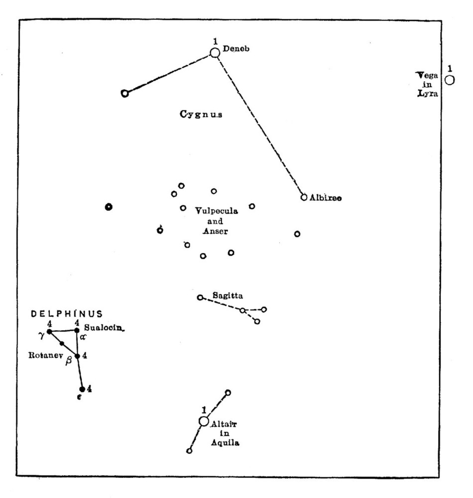 | Located by a line drawn from Cygnus to Aquila and prolonged. | ||