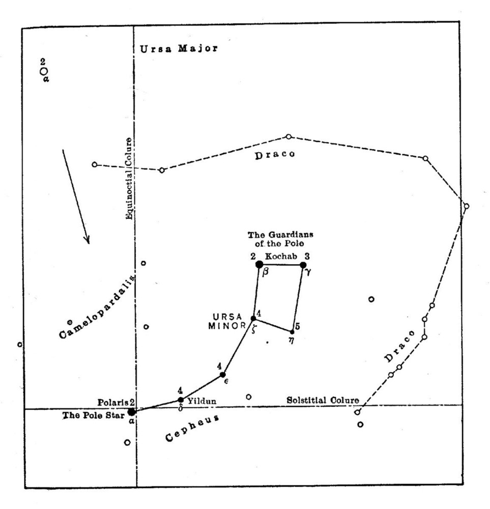 | Located by a line drawn from Ursa Minor through Ursa Major and prolonged. | ||