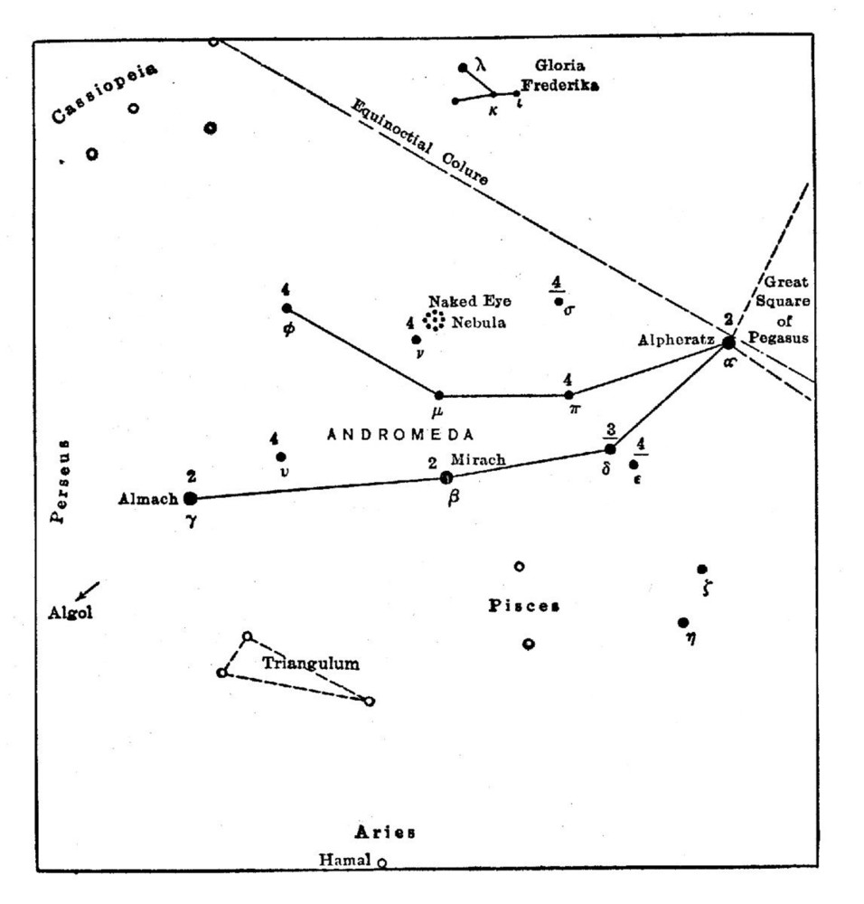 | The star Alpheratz in Andromeda is at the northeast corner of the great square of Pegasus. | ||