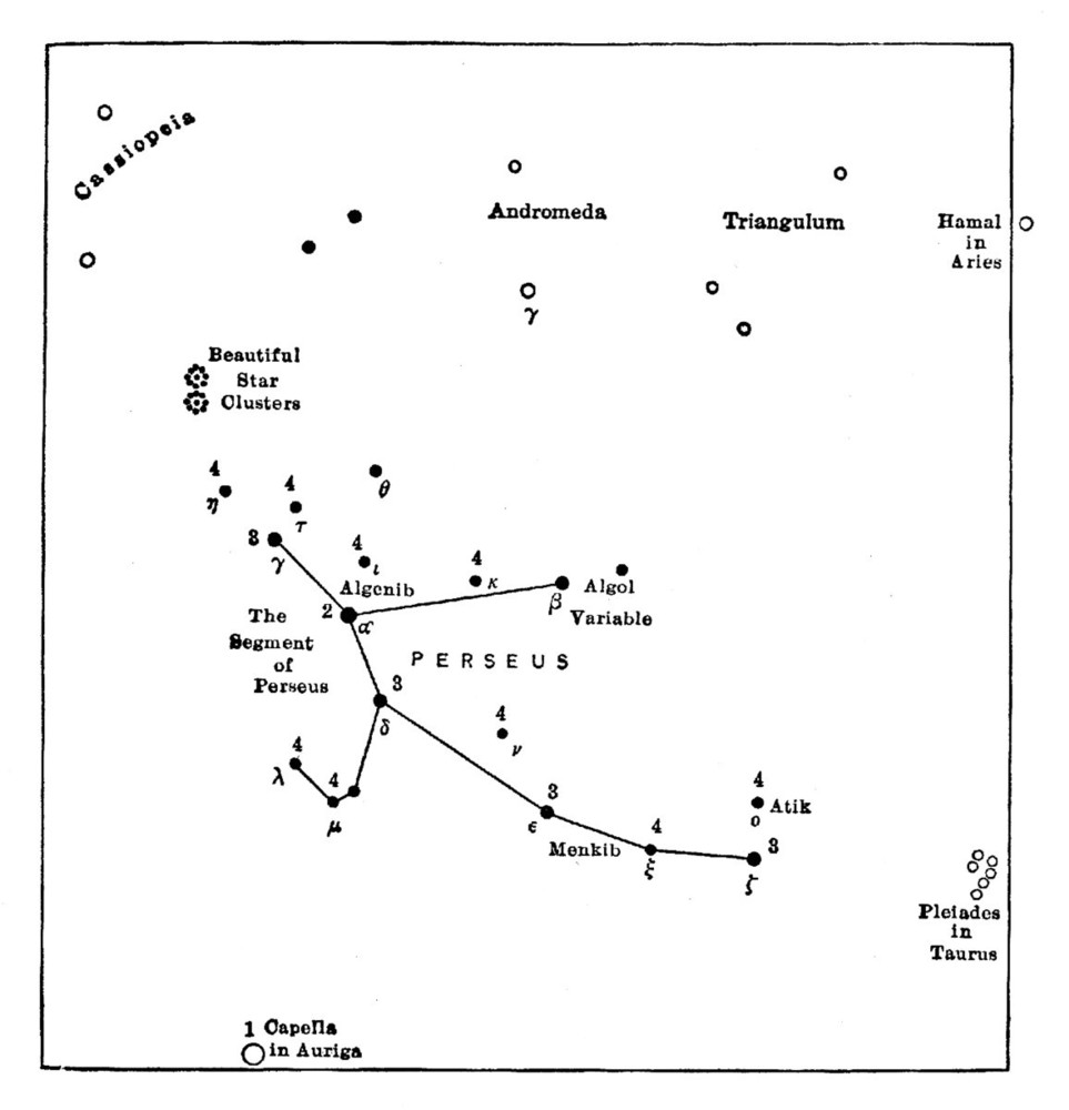 | A line drawn from Pegasus to Perseus passes through β in Triangulum. | ||