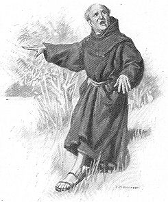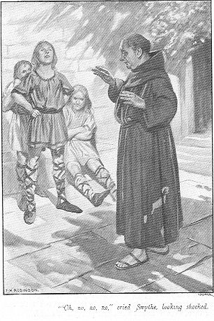 “Hah! No,” said the monk. “I couldn’t do that. I’m afraid I should take the biggest staff I could lift—or a sword—or an axe—and—and if either of the wretches tried to touch our good Queen or either of my dear boys I should hit him as hard as ever I could.”