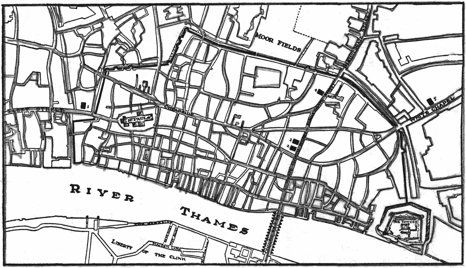MAP OF LONDON SHOWING THE PLAYHOUSES
